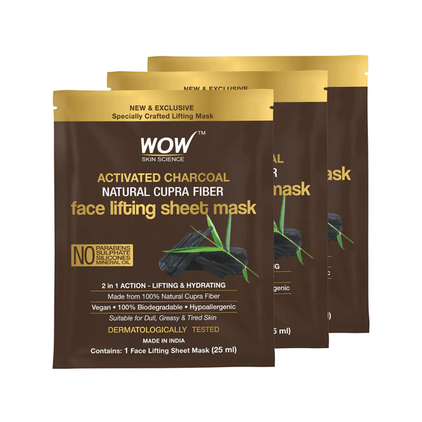 WOW Skin Science Activated Charcoal Natural Cupra Fiber Face Lifting Sheet Mask - For Skin Purification and Skin Hydration - 25ml