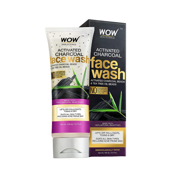 WOW Activated Charcoal infused with Activated Charcoal Beads No Parabens & Sulphate Face Wash (100mL)