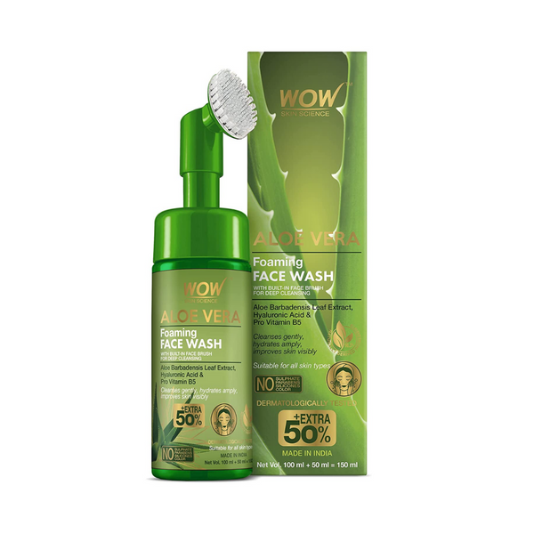 WOW Skin Science Foaming Aloe Vera Face Wash for Pimples, Dry & Oily Skin. No Parabens, Sulphate, Silicones & Color - 150mL