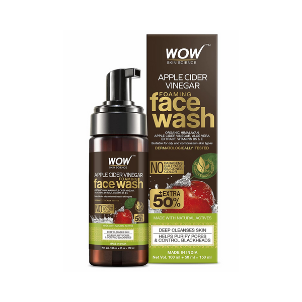 WOW Skin Science Apple Cider Vinegar Foaming Face Wash - with Organic Certified Himalayan Apple Cider Vinegar - No Parabens, Sulphate, Silicones & Color 100mL
