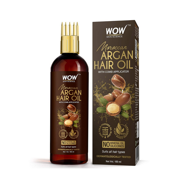 WOW Skin Science Moroccan Argan Hair Oil - WITH COMB APPLICATOR - Cold Pressed - No Mineral Oil & Silicones - 100mL