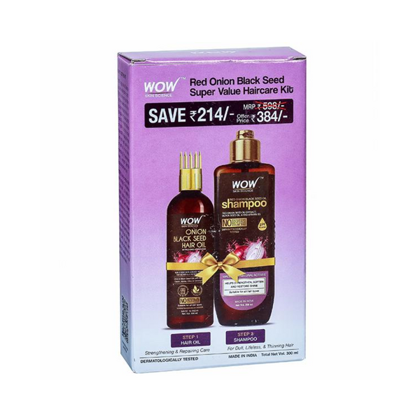 Wow Skin Science Red Onion Black Seed Super Value Haircare Kit (Hair Oil & Shampoo) 100 ml + 200 ml