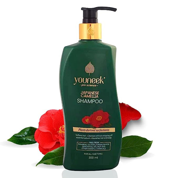 Youneek Pro Science Japanese Camellia Hydrating Shampoo with Antioxidants for Frizz Free, Smooth, Strong Hair, Sulphate and Paraben Free - 300ml