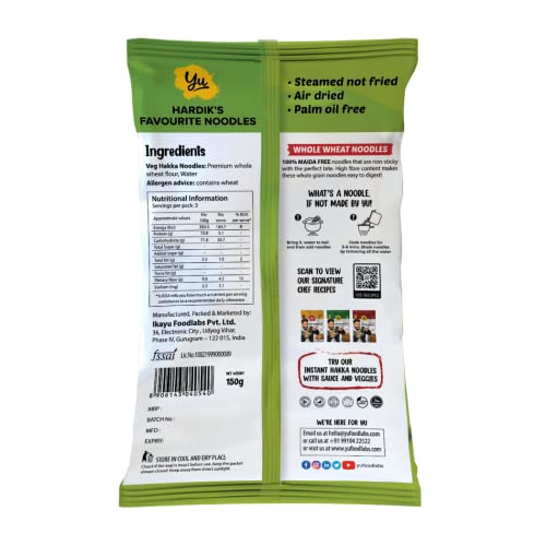 Yu Foodlabs - Whole Wheat Noodles - 100% Atta & Zero Maida - Easy To Digest Healthy Noodles - No Preservatives & 100% Natural - Just Boil - Ready In 5 Mins - Serves 6-300 grams (Pack Of 2)