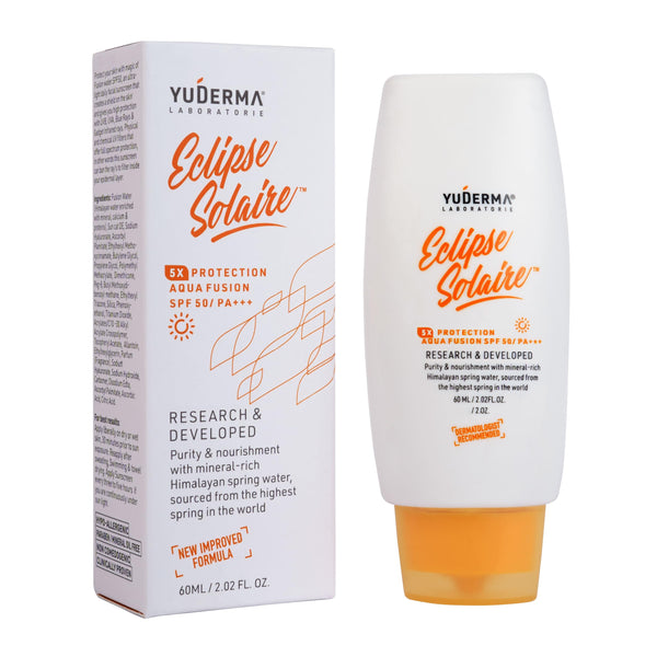 YUDERMA Eclipse Solaire Aqua Fusion Sunscreen - 5X PROTECTION WITH SPF 50 PA+++ | With Himalayan Spring Water | Non-Greasy | All Skin Types 60g