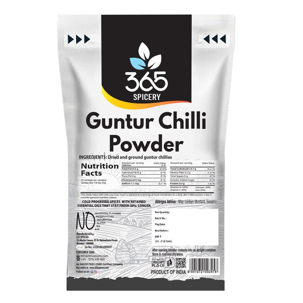 365 SPICERY Guntur Chilli Powder | Fiery Chilli Powder | Finest Guntur Chillies | Suitable for Indian and Other Cuisines - 1 kg
