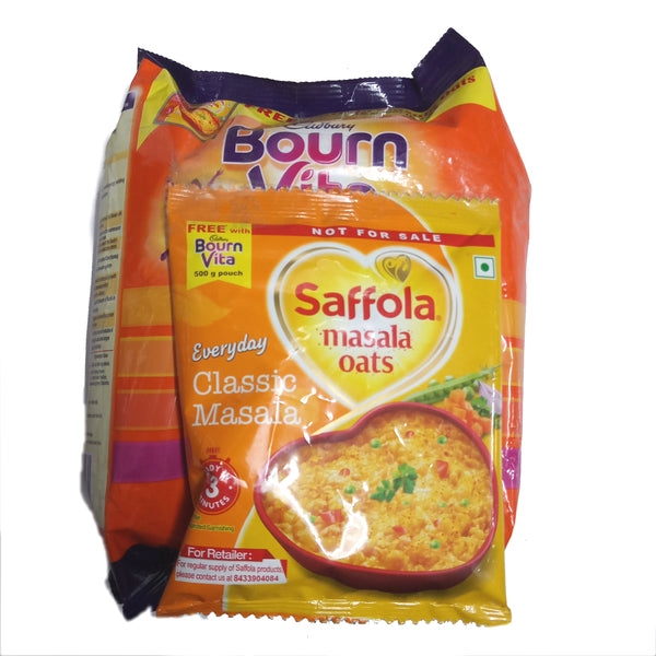 Cadbury Chocolate Health Drink - Bournvita, Refill Pack, 500 g Pouch (Free Safola Masala Oats, 38G)