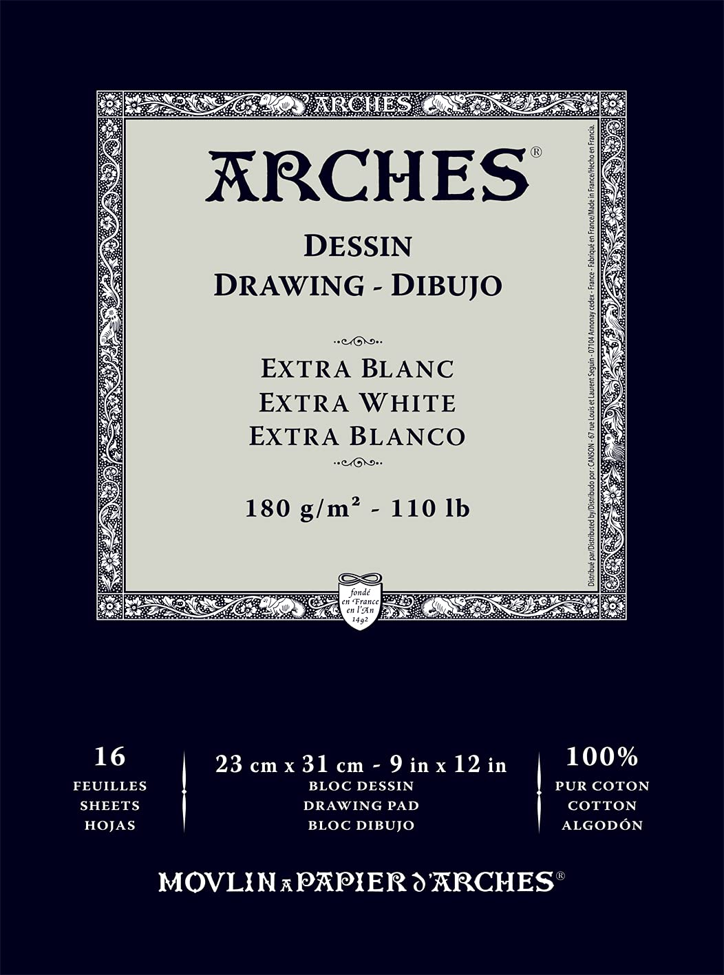 Arches Drawing 180 GSM Cold Pressed Extra White 23 x 31 cm Paper Pad, 16 Sheets