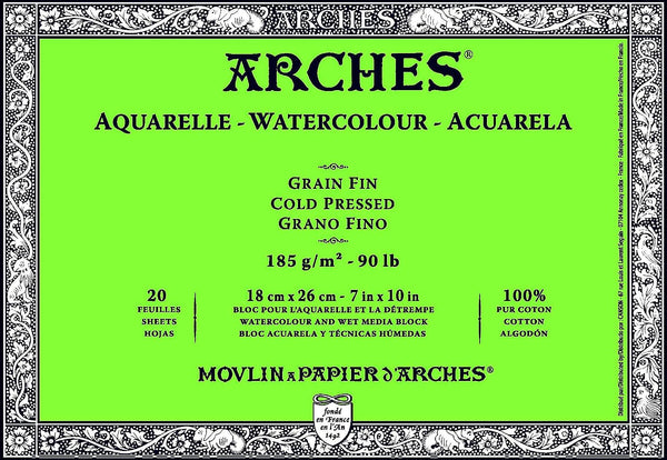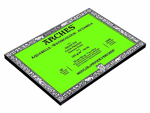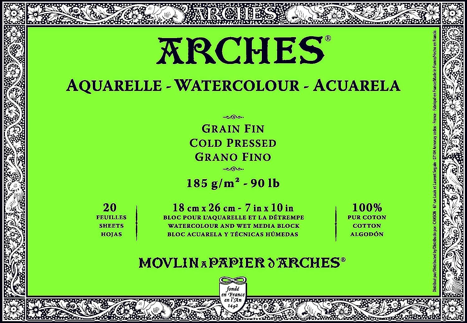 Arches Watercolour 185 GSM Cold Pressed Natural White 18 x 26 cm Paper Blocks, 20 Sheets