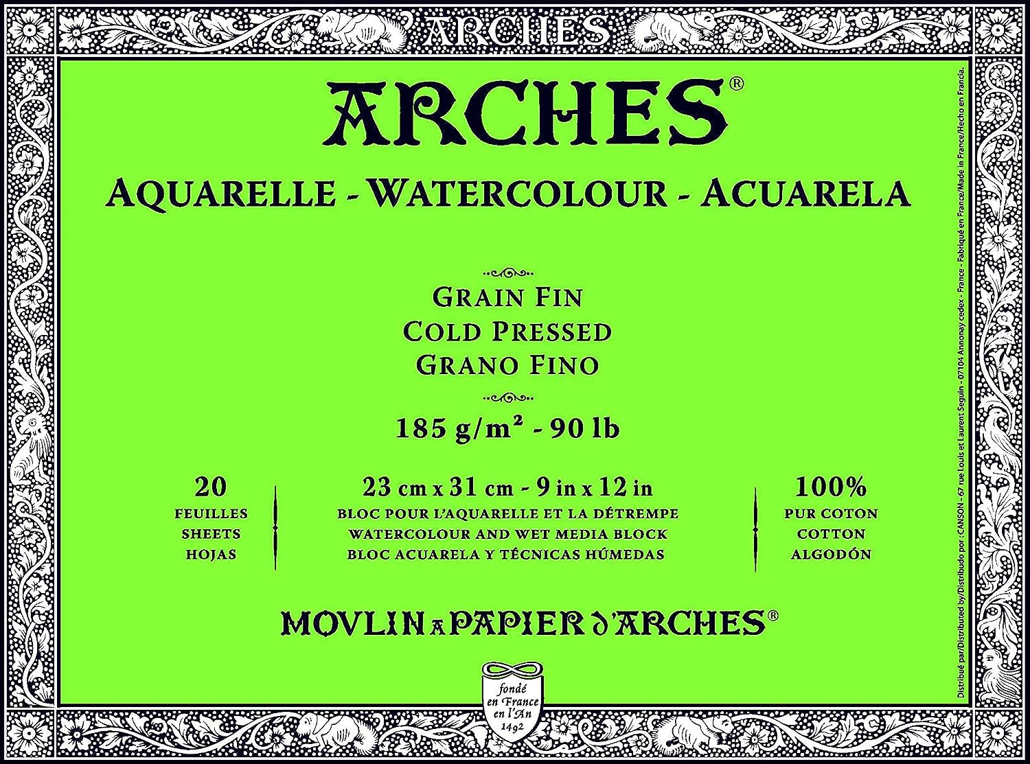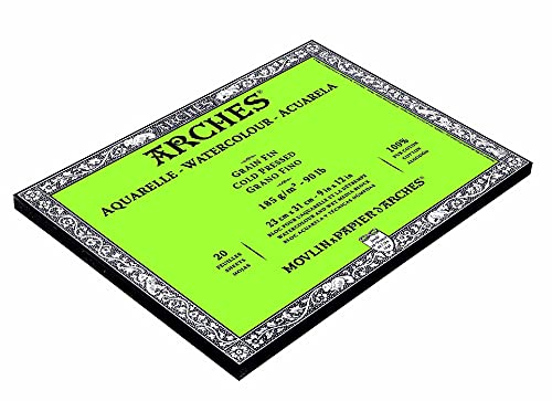 Arches Watercolour 185 GSM Cold Pressed Natural White 23 x 31 cm Paper Blocks, 20 Sheets