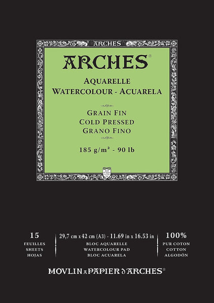 Arches Watercolour 185 GSM Cold Pressed Natural White A3 Paper Pad, 15 Sheets