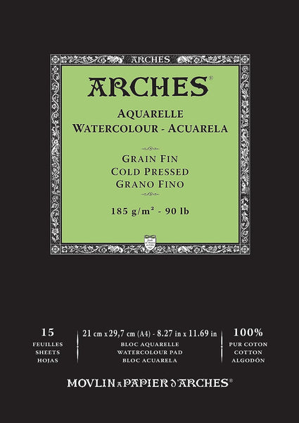 Arches Watercolour 185 GSM Cold Pressed Natural White A4 Paper Pad, 15 Sheets