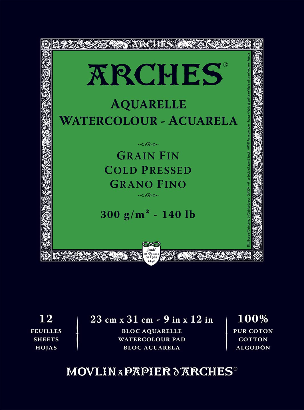 Arches Watercolour 300 GSM Cold Pressed Natural White 23 x 31 cm Paper Pad, 12 Sheets