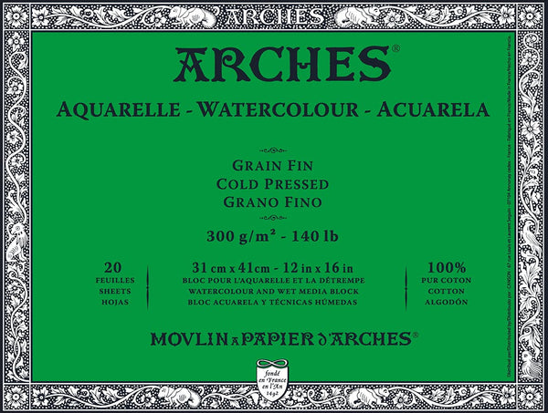 Arches Watercolour 300 GSM Cold Pressed Natural White 31 x 41 cm Paper Blocks, 20 Sheets
