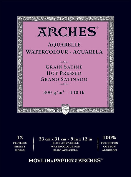 Arches Watercolour 300 GSM Hot Pressed Natural White 23 x 31 cm Paper Pad, 12 Sheets