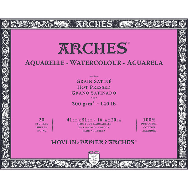Arches Watercolour 300 Gsm Hot Pressed Natural White 41 X 51 Cm Paper Blocks- 20 Sheets