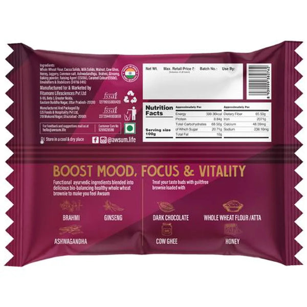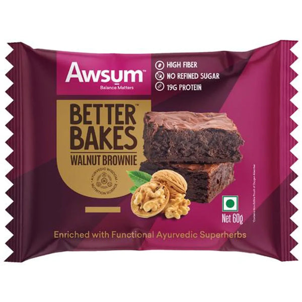 AWSUM Better Bakes Walnut Brownie With Ayurvedic Herbs - High Fibre, No Refined Sugar, 19g Protein, 60 g