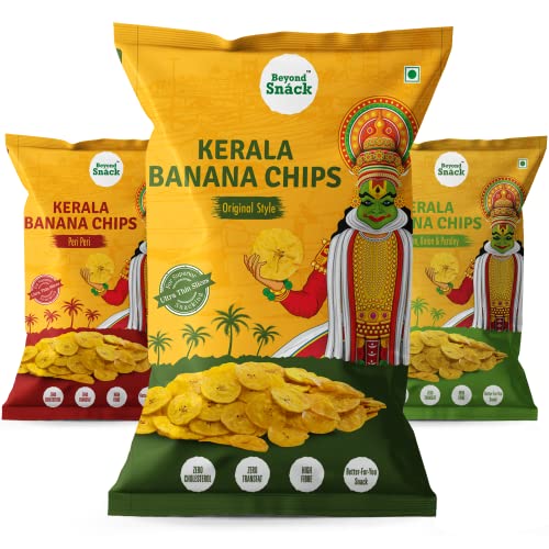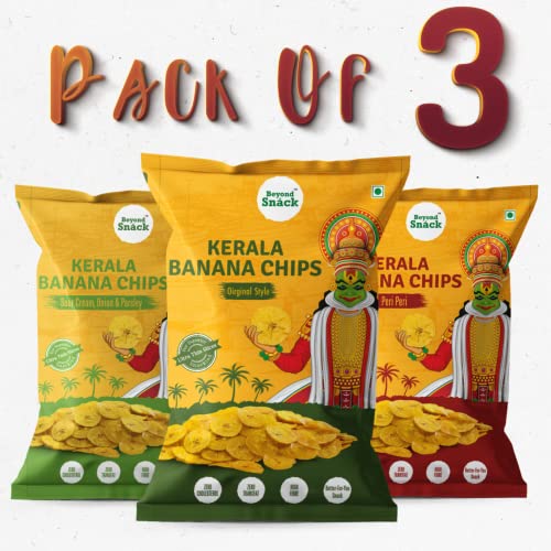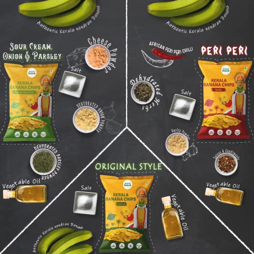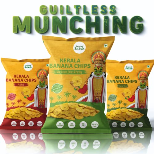 Beyond Snack Kerala Banana Chips Thin Cruchy Crispy Snacks Combo pack (Original salted, Peri Peri, Sour cream Onion & Parsley) 300g (100g*3) - Family Pack