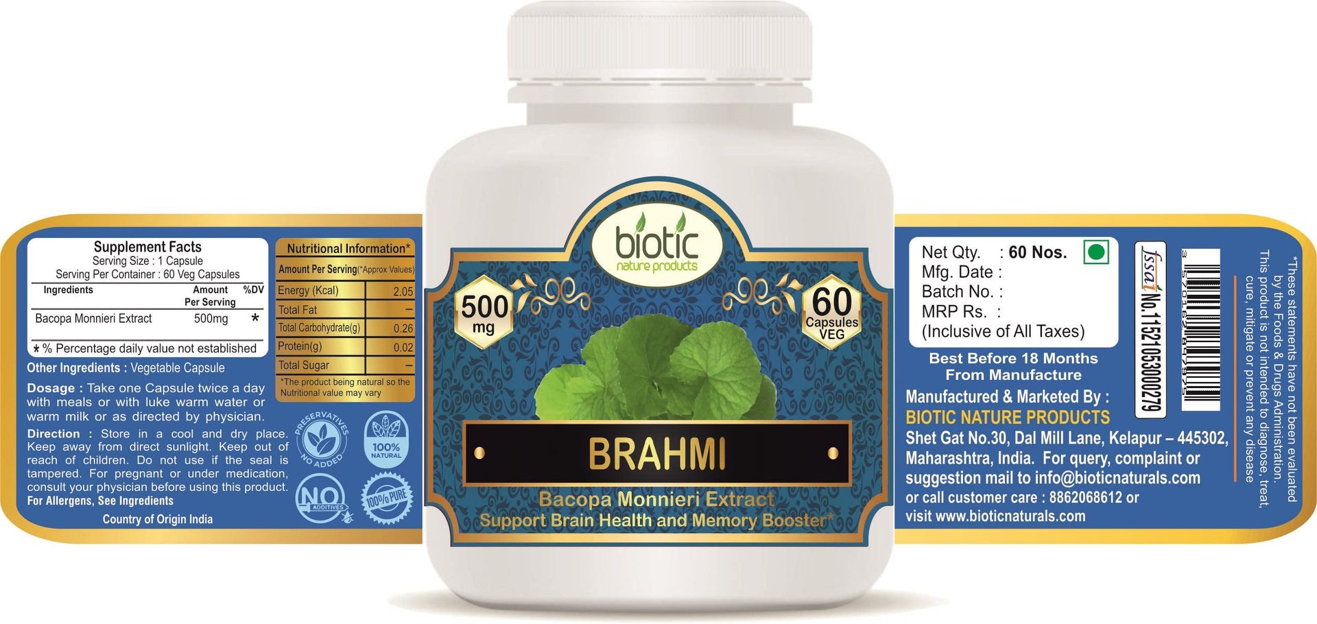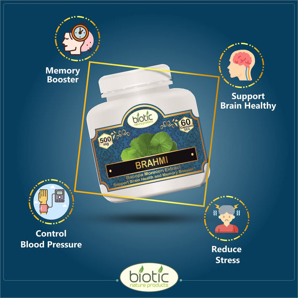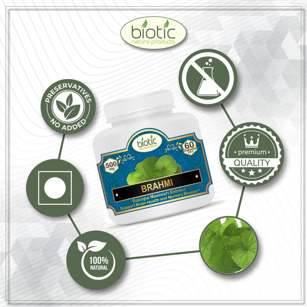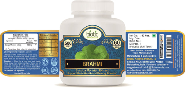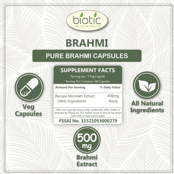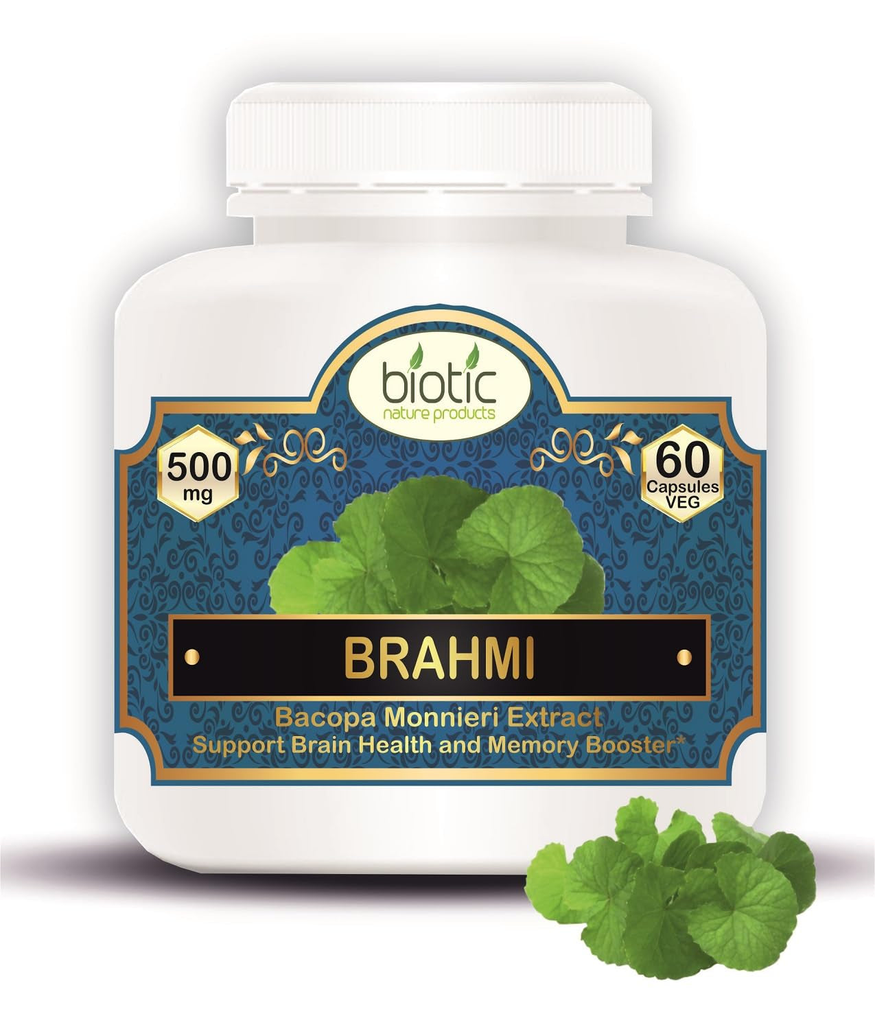 Biotic Brahmi Capsules - Bacopa Monnieri Extract 500mg - 60 Veg Capsules