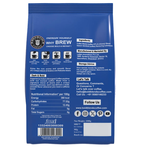 Bold Blends Cafe Special Blend 1 kg Instant Coffee Powder | Strongest Caffeinated Coffee | (5 * 200g) Bag | Medium Roast | Premium Blend of Arabica & Robusta to Energize Yourself