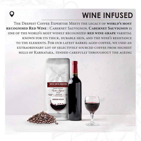 Cabernet Sauvignon Wine Barrel Aged Coffee | Toffee Coffee Roasters | Arabica Freshly Medium Roast | Coffee Notes: Fine Red Grapes and Wine (Decoction Coffee Maker, 250gm)