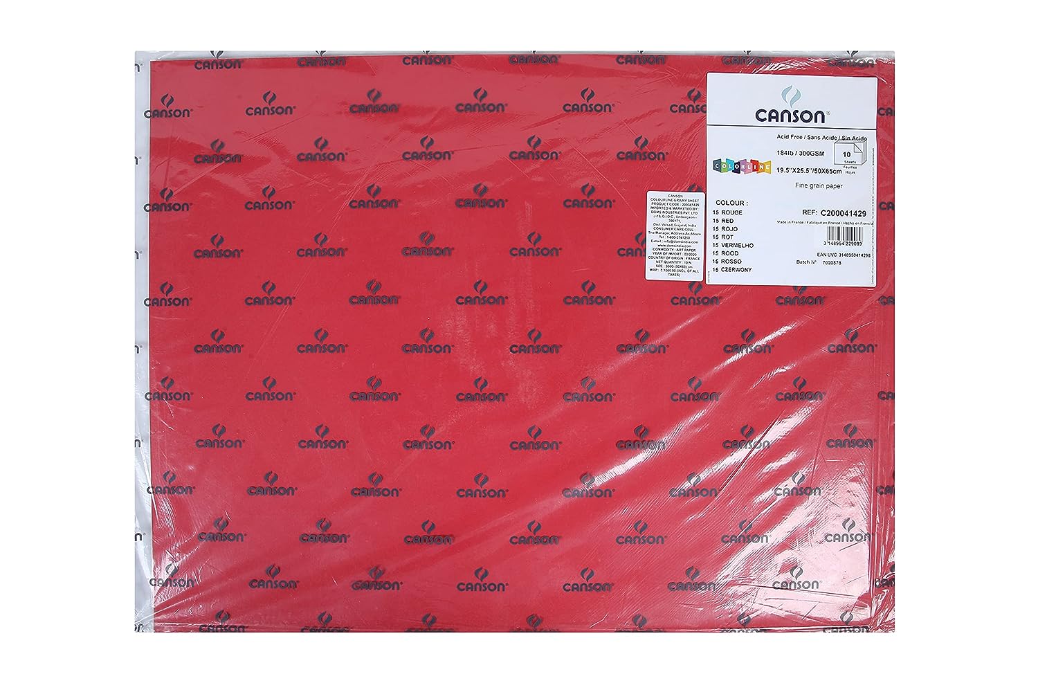 Canson Colorline 300 GSM Grainy 50 x 65 cm Coloured Drawing Paper Sheets(Red, 10 Sheets)
