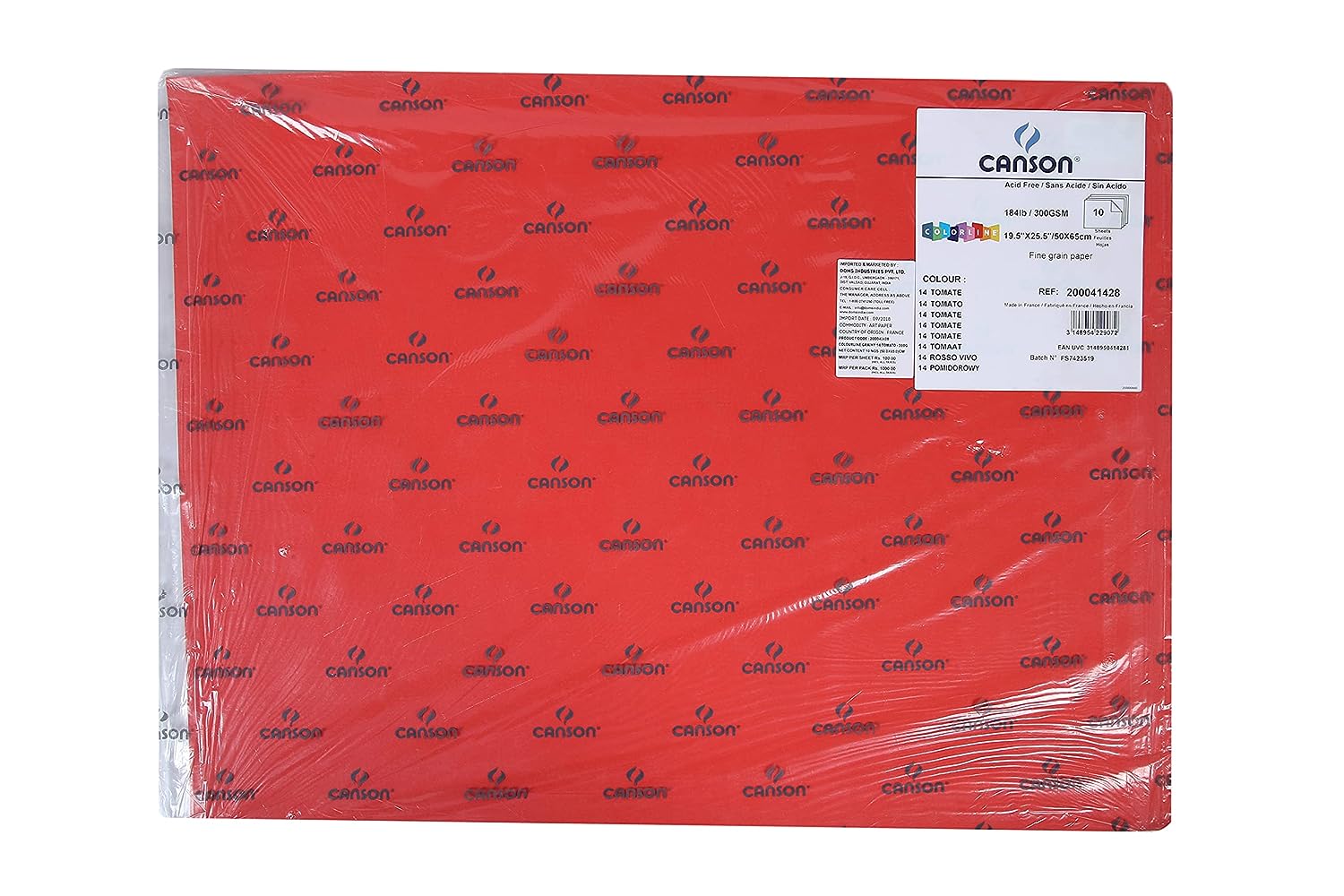 Canson Colorline 300 GSM Grainy 50 x 65 cm Coloured Drawing Paper Sheets(Tomato, 10 Sheets)