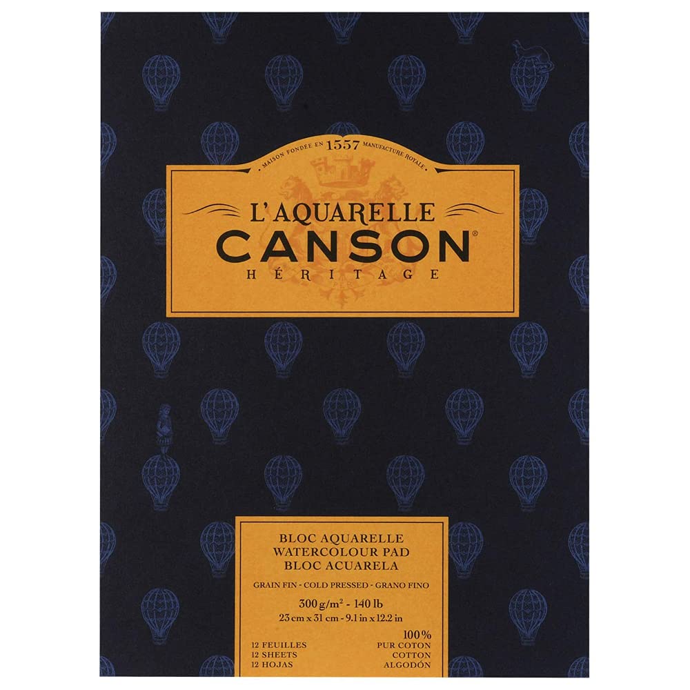 Canson Heritage Cotton 300 GSM Cold Pressed 23 x 31 cm Paper Pad(White, 12 Sheets)