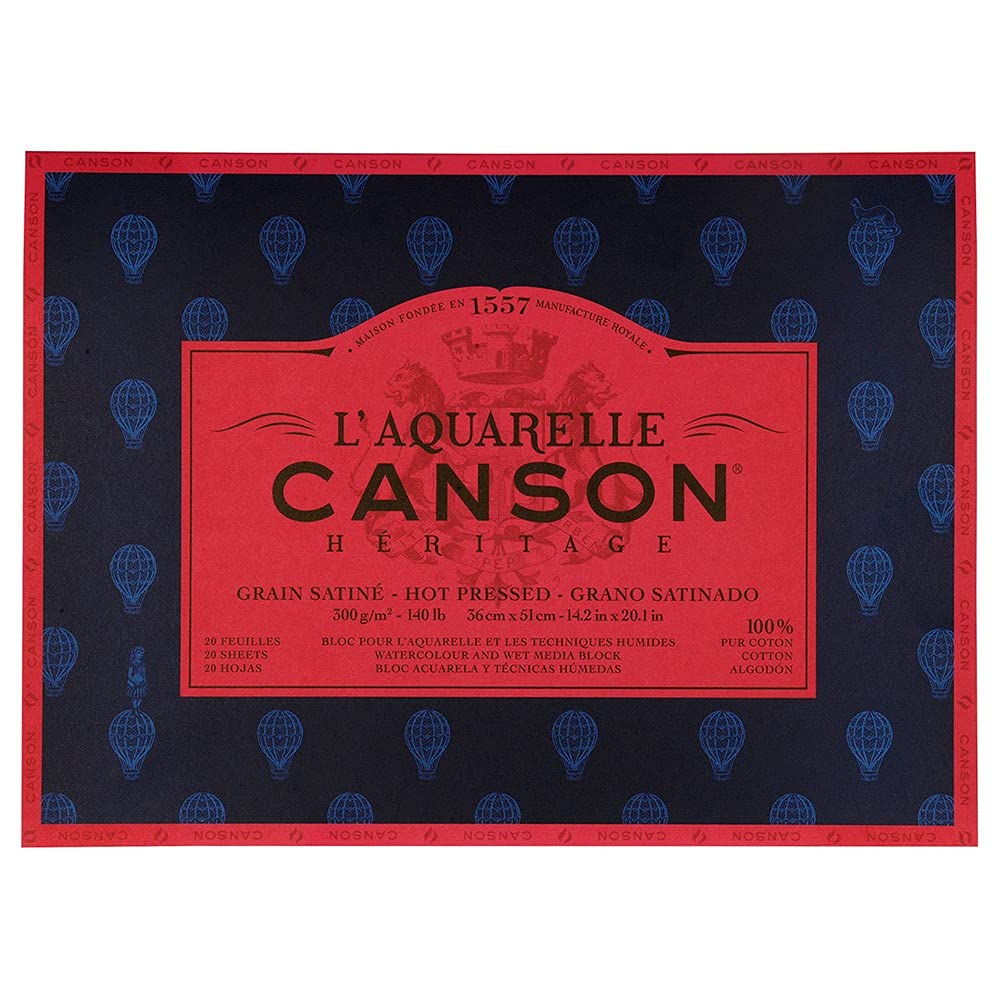 Canson Héritage Cotton 300 GSM Hot Pressed 36 x 51 cm Paper Block(White, 20 Sheets)