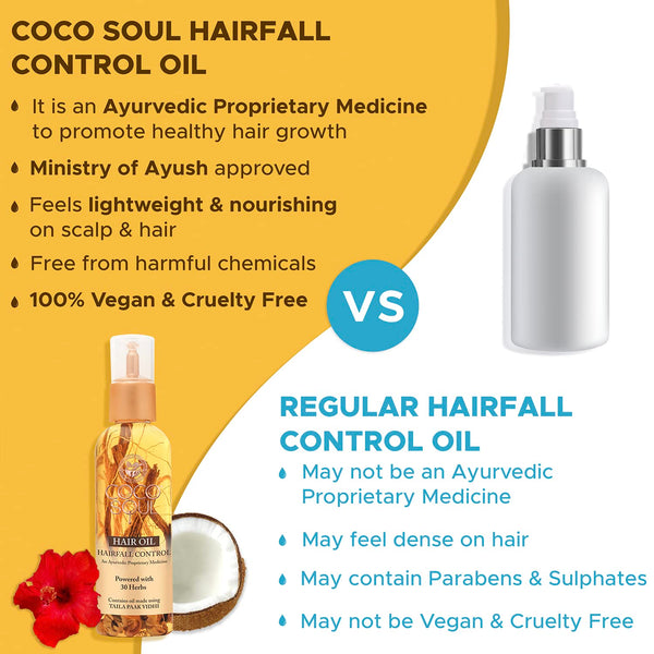 Coco Soul Hair Fall Control Ayurvedic Hair Oil with Bhringraj | Banyan Tree Roots | Hibiscus | Amla | Black Sesame & Methi - Makers of Parachute Advansed 95ml