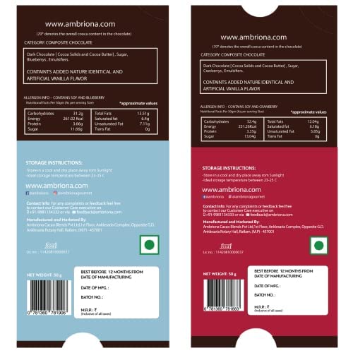Daarzel Vegan & Gluten Free 70% Dark Chocolate With Blueberry & Cranberry | Dark Chocolates | Pack of 2