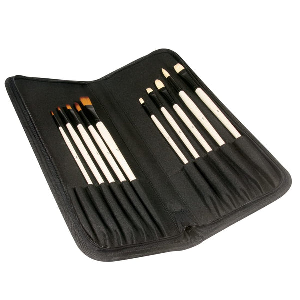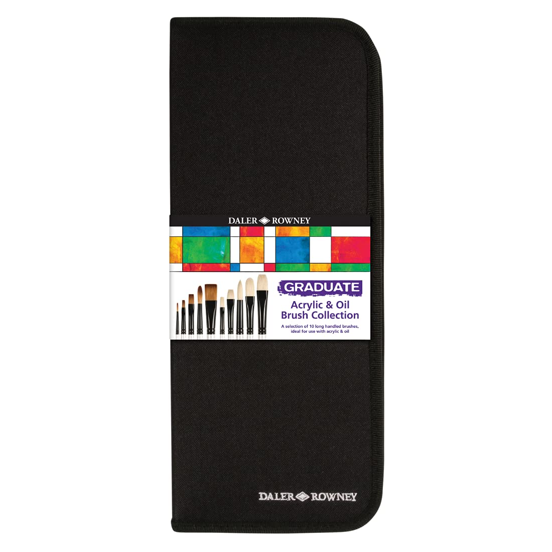 Daler-Rowney Graduate Long Handle Acrylic & Oil Zip Case Brush Set (10x Brushes)