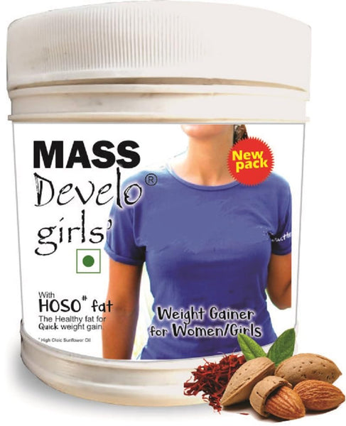 Develo Weight Mass Gainer Protein Shake for Fast Gain in women girls, Nutrition Food Supplement, with Natural Fat Energy 27 Vitamins & Minerals - 500 g Powder Kesar Badam Flavour