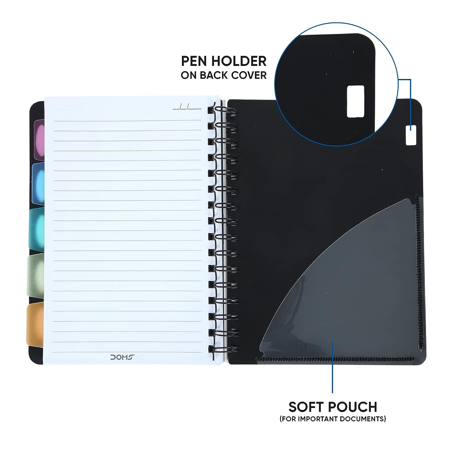 Doms 5 Subject Poly Cover Wiro Notebook | 70 GSM, 5 Subject, 300 Pages | 21.6 x 14 CM | The Book is Sturdy & Long Lasting | Pack Of 1