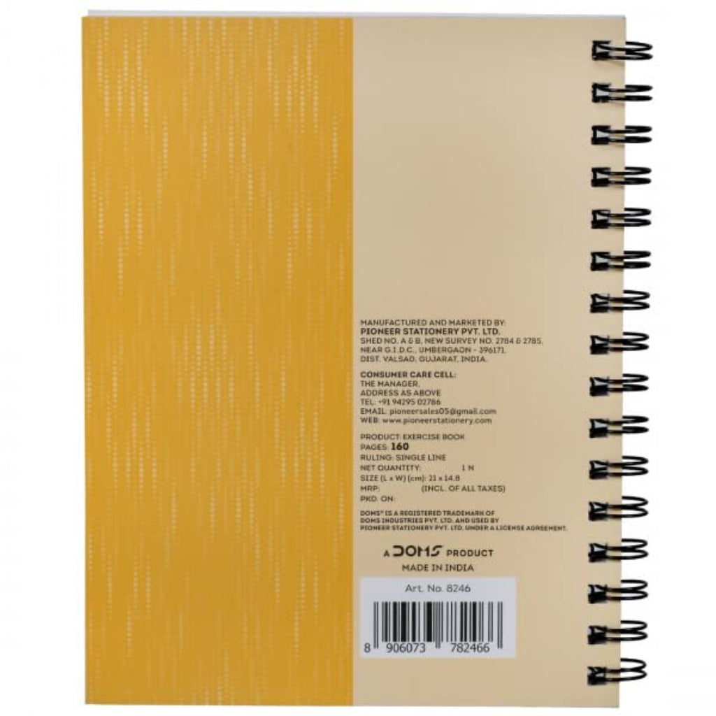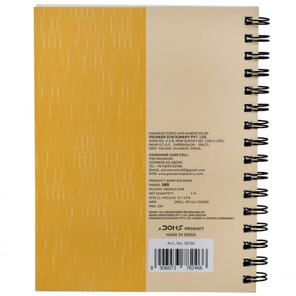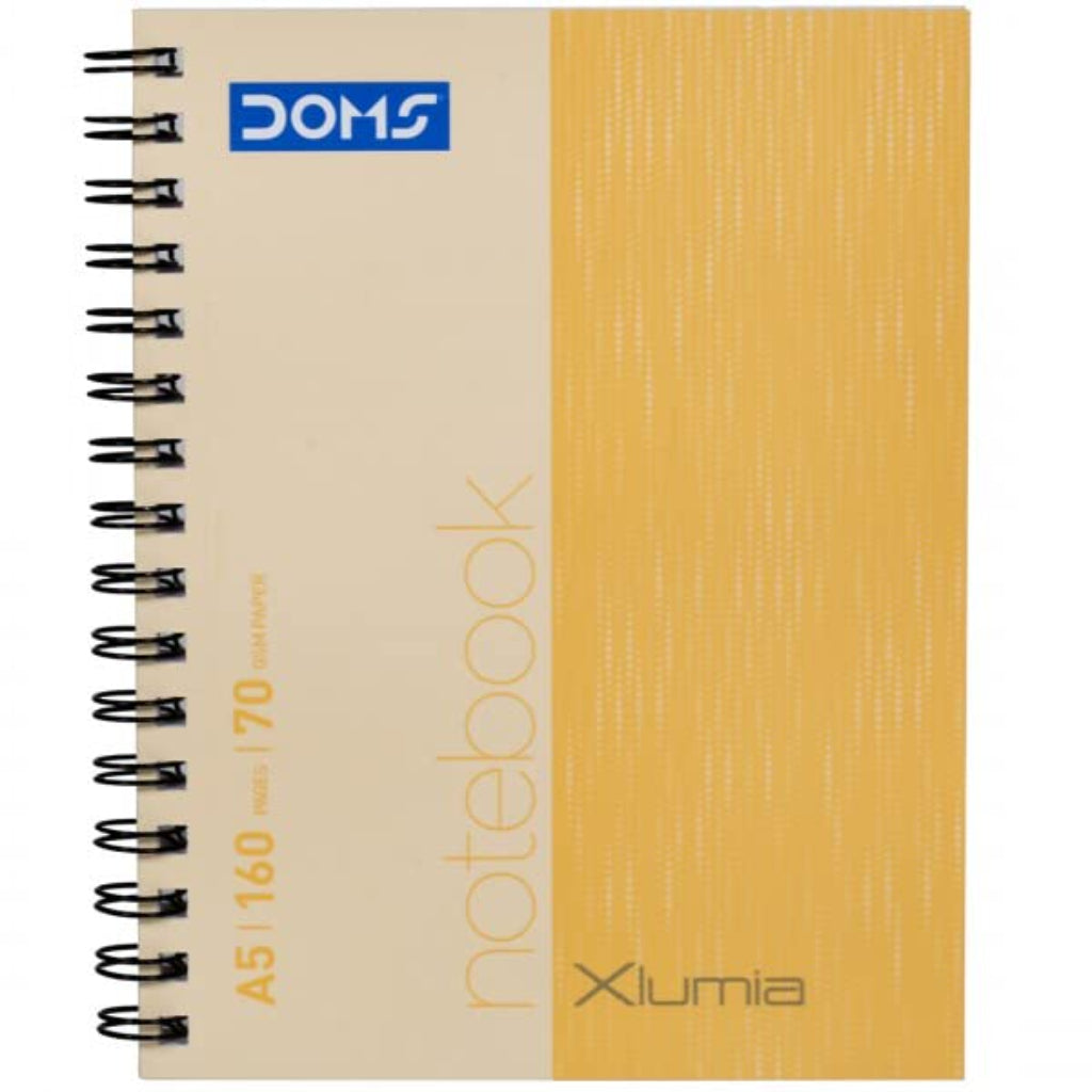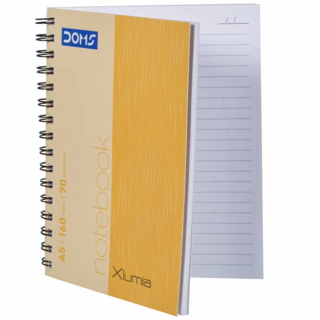 Doms 70GSM A5 Single Line Book Wiro Bound Xlumia Series Wiro Notebook - 160 Pages, Pack of 1
