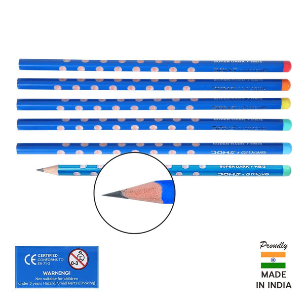 Doms Groove Super Dark HB/2 Graphite Pencils Jar Pack | Innovative Groove For Perfect Grip | Free Pencil, Eraser, Sharpner & Scale | Ideal For Sketching & Drawing | Pack of 30 Pencils