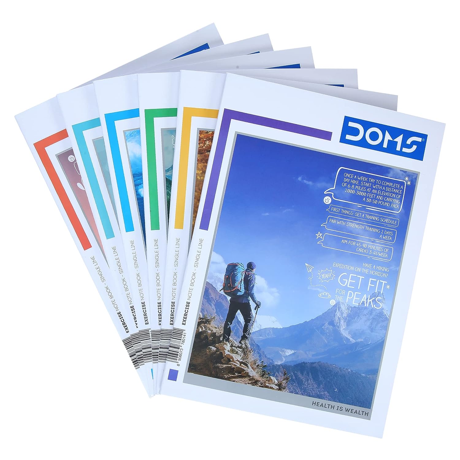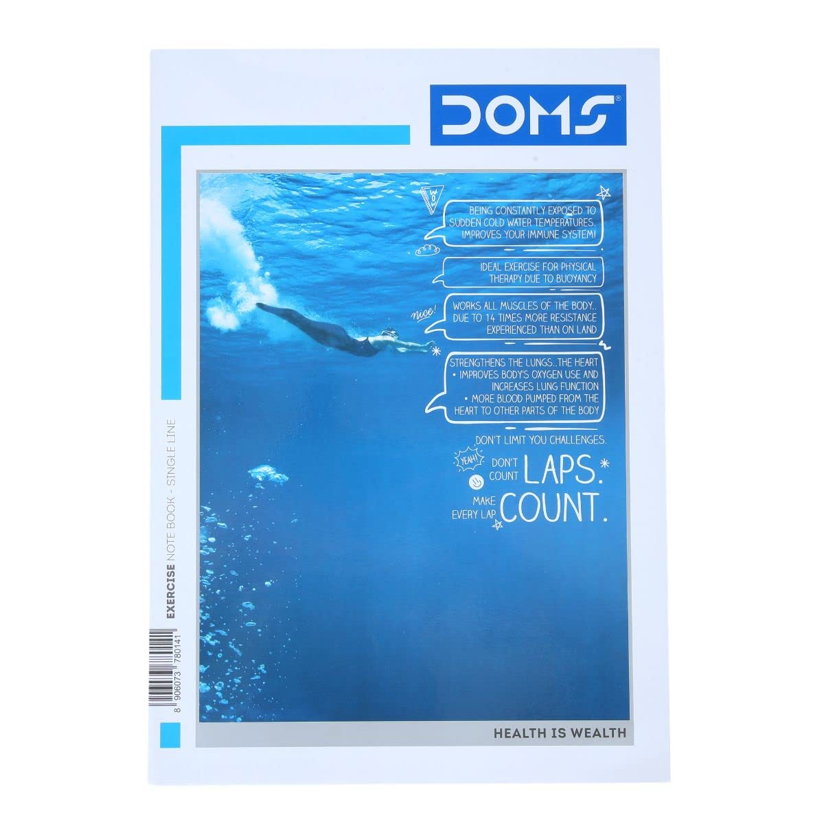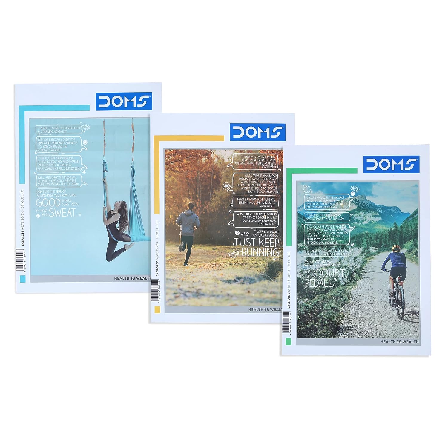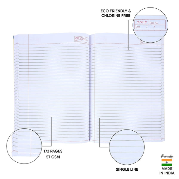 Doms Health Is Wealth Series Notebook | A4 | Single Line | 57GSM | 172 Pages | 21 x 29.7 cm | Pack of 3