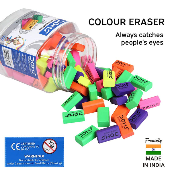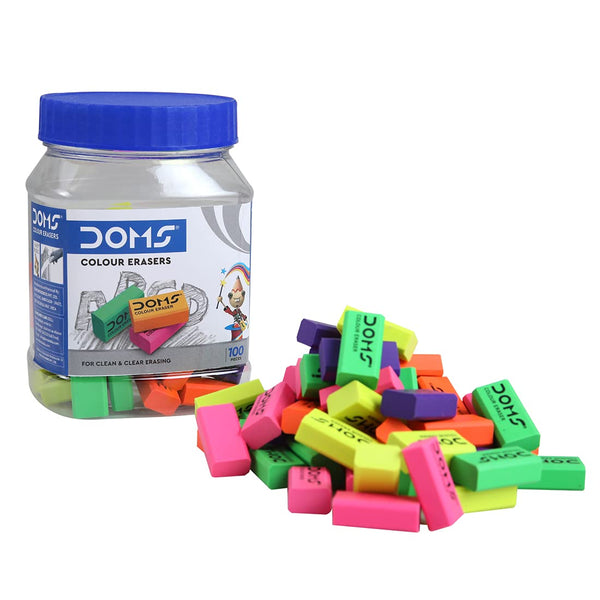 Doms Non-Toxic Dust Free Coloured Erasers Jar Pack Set