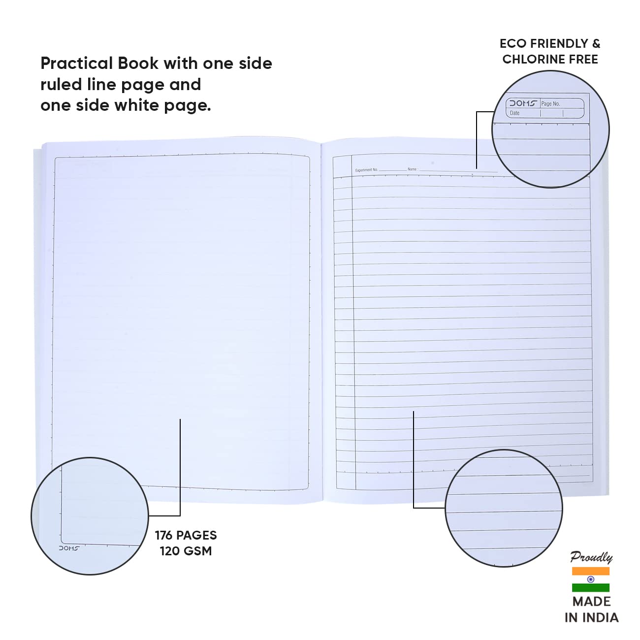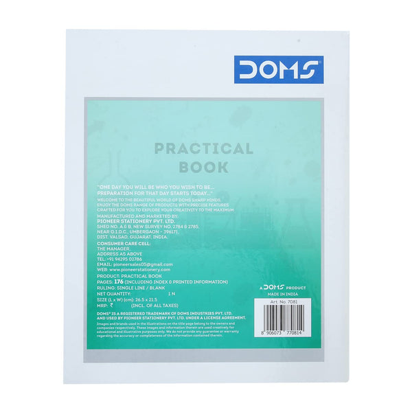 Doms Practical Book | One side Ruled and One Side Plain | 120GSM | 176 Pages | 21.5 x 26.5 cm | Pack of 3