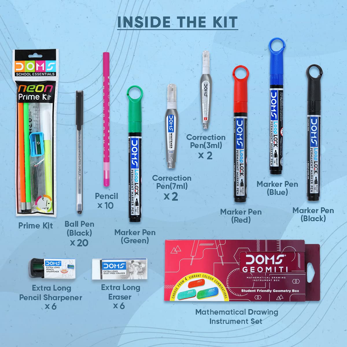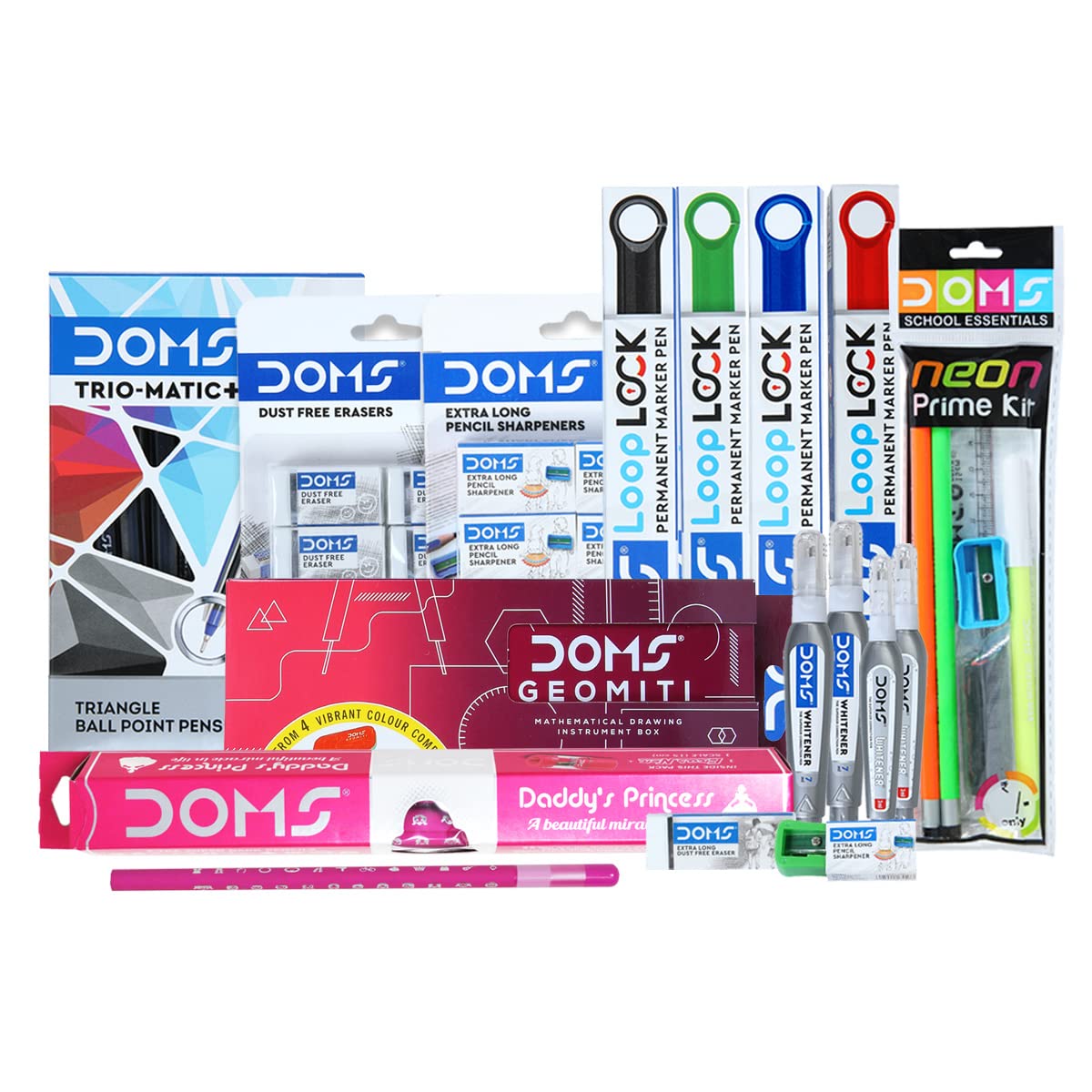 DOMS School Smart Kit for Girls | Best for School, College & Office | 52 Assorted Items | Graphite Pencil, Ball Pens, Geometry Box | DOMS Stationery | Stationery Items for School & Office