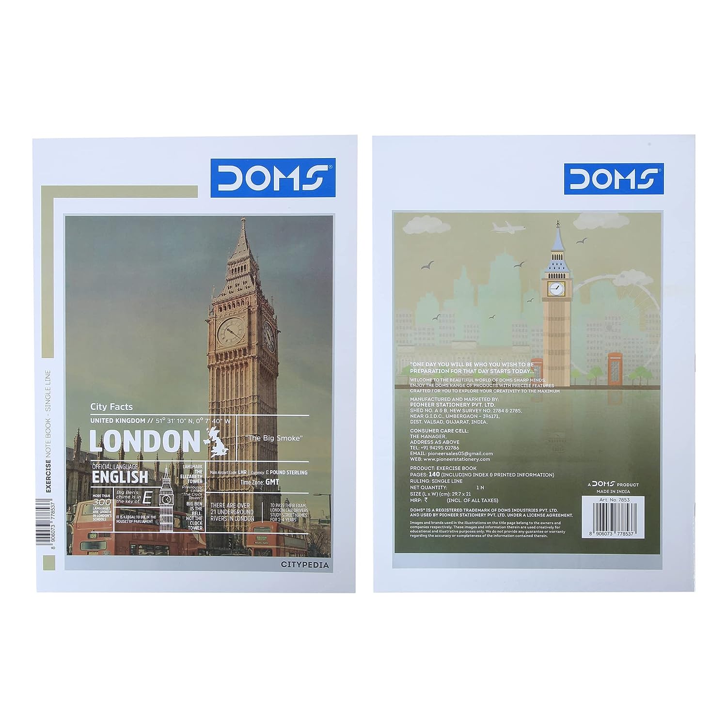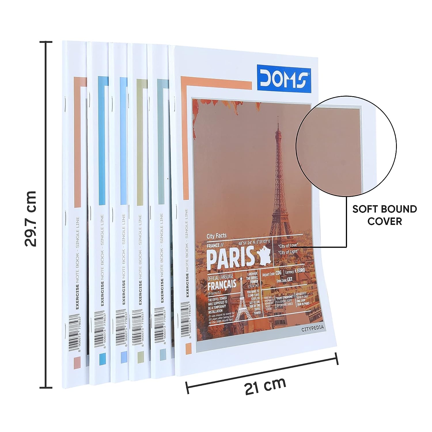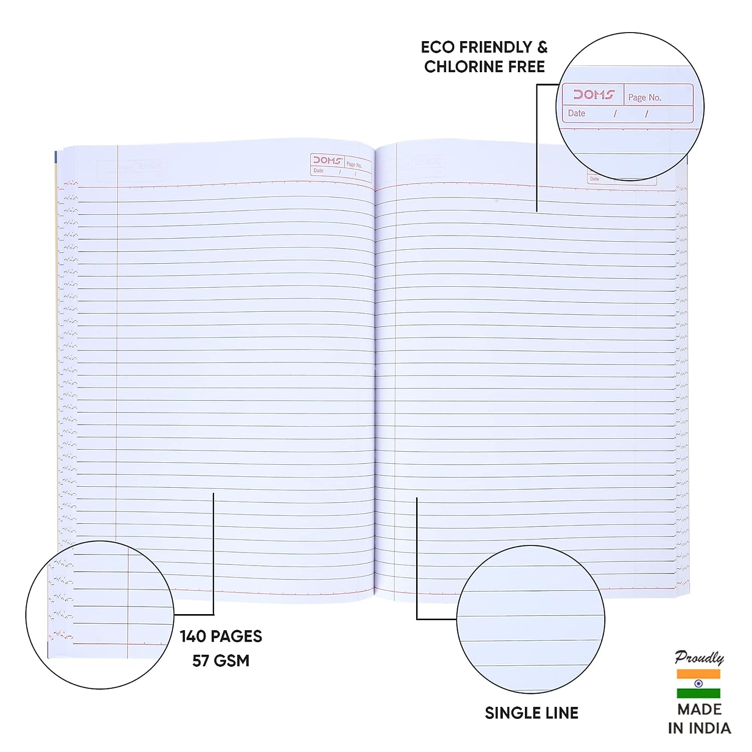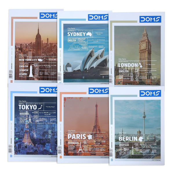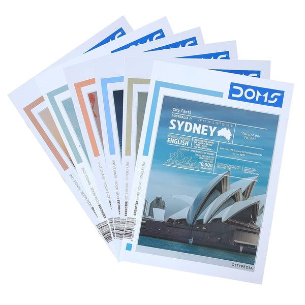 Doms Single Line A4 Note Book (Vacations Series) 140 Pages (Pack of 6)