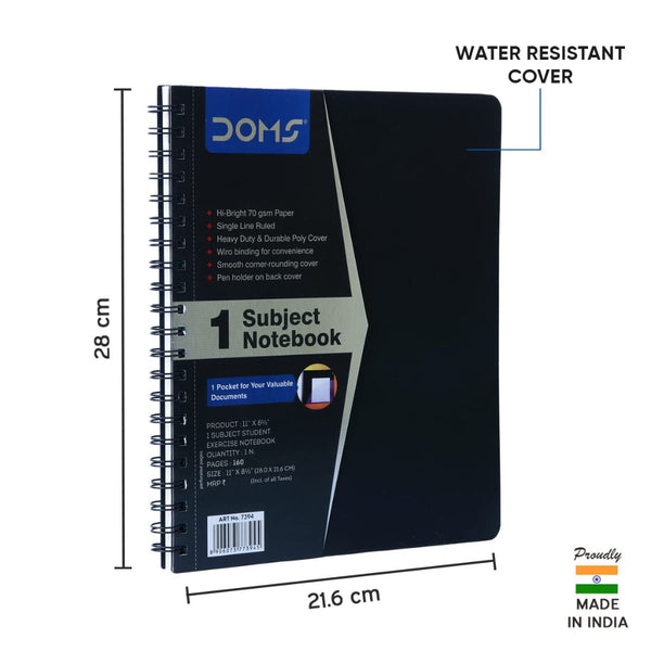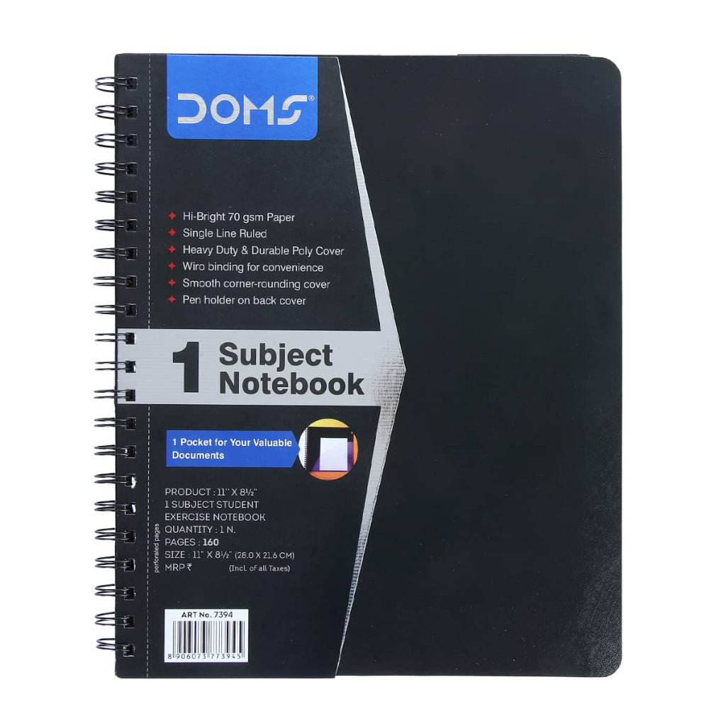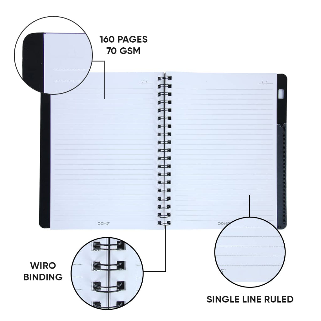 Doms 70GSM 1 Subject Ruled Wiro Binding Notebook - 160 Pages, Pack of 1