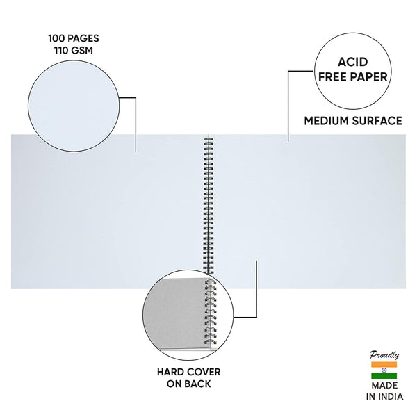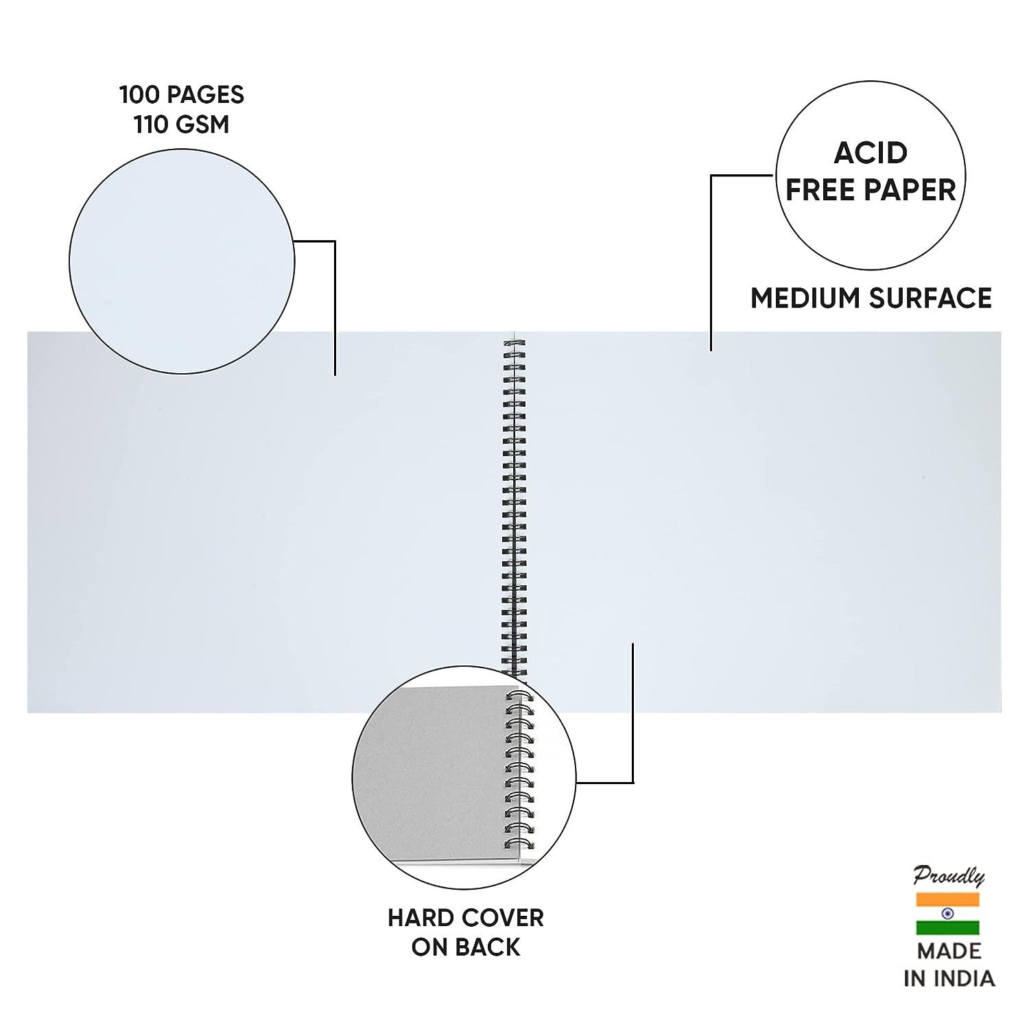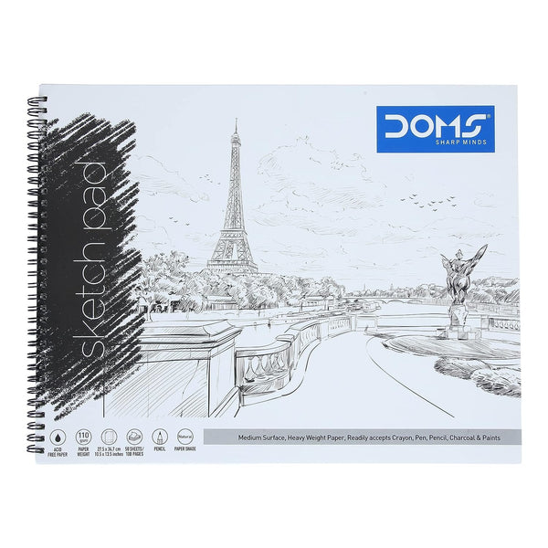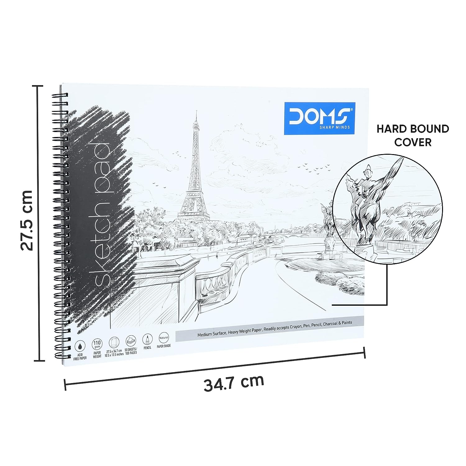 DOMS Wiro Binding Notebook | Sketch Pad | Plain | 110GSM | 50 Pages | 27.5 x 34.7 cm | Pack of 1 | for School, College and Office Use