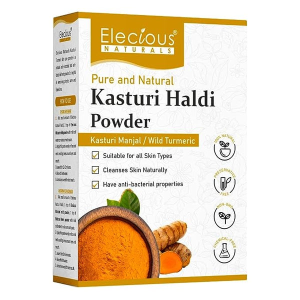 Elecious Kasturi Haldi Powder for face (100 grams) | Wild turmeric powder for glowing skin | Kasturi Manjal | 100% Natural, Chemical-free, Perseverative-free, Non-GMO
