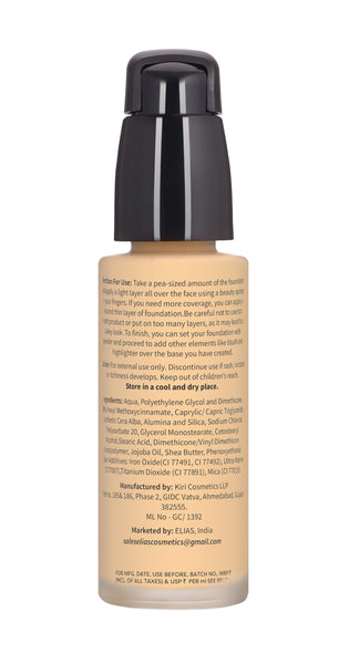 ELIAS Liquid Foundation - 30 ml Water Resistant Lasts Up to 10 Hrs Super Matte Cashew Fair, Golden undertone Full Coverage Long Wear Illuminating (Netural & Warm)