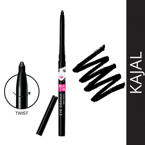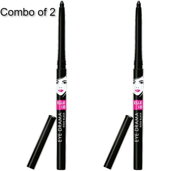 Elle 18 Eye Drama Kajal - Bold Black (0.35 gm) - Combo of 2