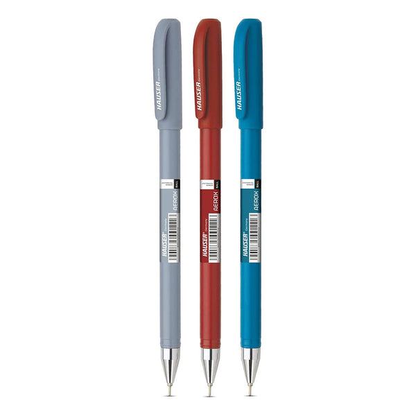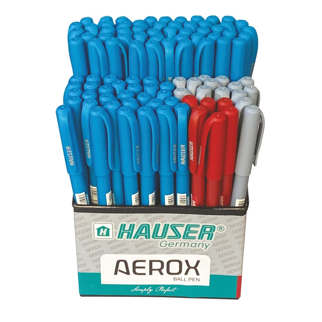 Hauser Aerox 0.6 mm Ball Pen Stand - Blue, Black & Red Ink, Set of 100
