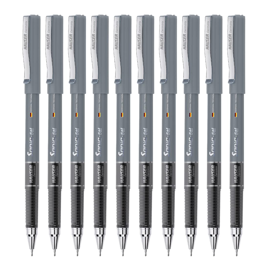 Hauser Sonic 0.55mm Gel Pen - Black Ink, Set of 10