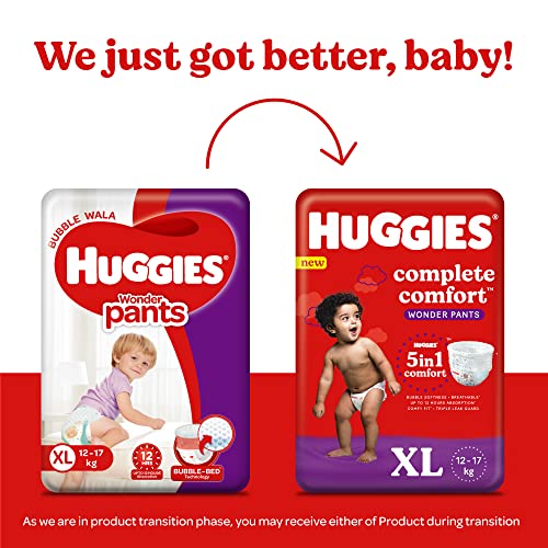 Huggies Complete Comfort Wonder Pants Extra Large (12-17kg) Size, 56 count Baby Diaper Pants, with 5 in 1 Comfort