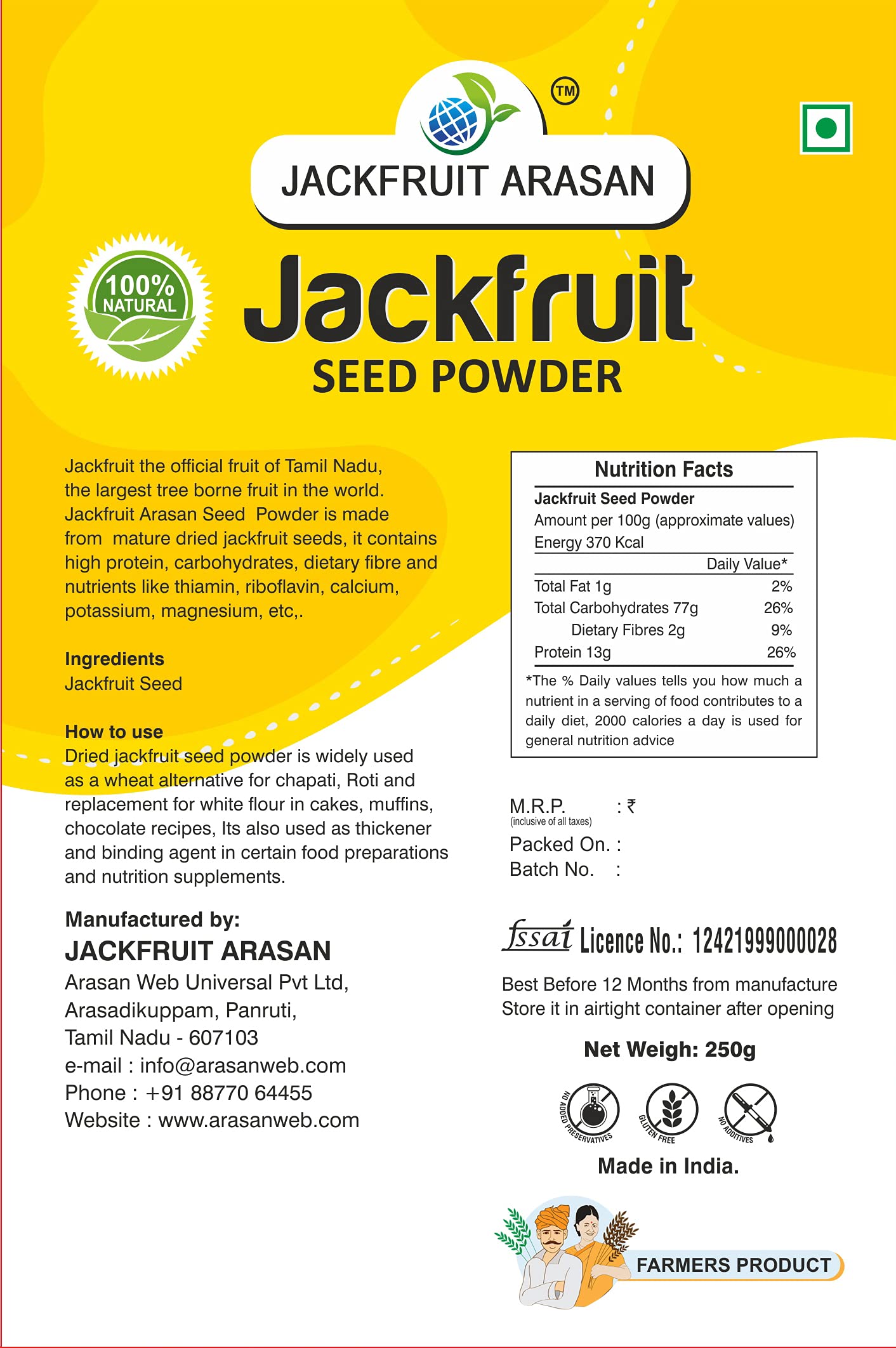 Jackfruit Arasan Jackfruit Seed Powder 500Gram(2 Pack Of 250Gram)